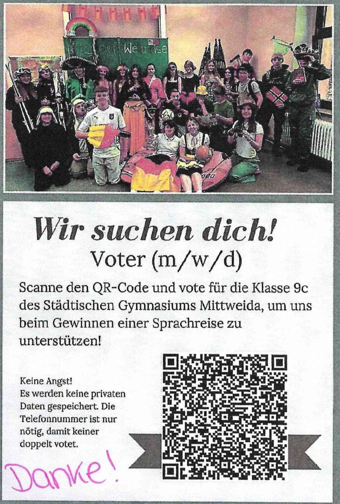 Home » Wir suchen dich! Die Klasse 9c des Städtischen Gymnasiums Mittweida braucht Unterstützung